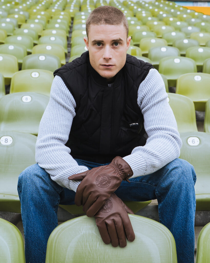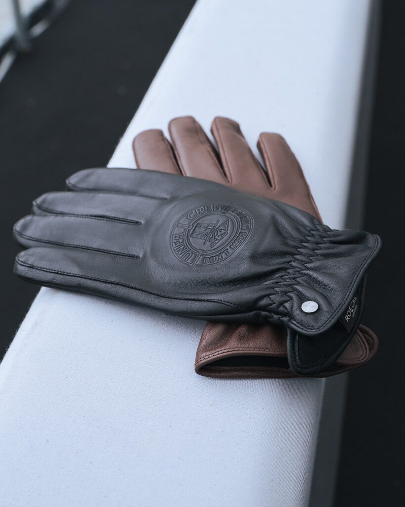 Herzstück der Kapsel sind klassische Nappaleder-Handschuhe in zwei Colorways – gefertigt aus leitfähigem Leder für volle Touchscreen-Funktionalität. Das DMWU Logo zeigt sich bewusst zurückhaltend, aber prägnant.