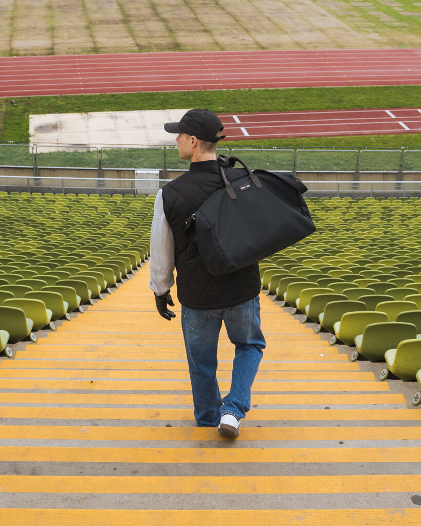 Ergänzt wird die Kollektion durch einen Weekender aus recyceltem Polyester, wahlweise in tiefem Schwarz oder mit eingewebtem Reflective-Garn – ein Statement zwischen Funktion, Nachhaltigkeit und Stil. Dazu kommen ein T-Shirt mit Collabo-Logo und prägnantem „Roots“-Rückenprint sowie eine Cap aus Dry-Fit Material, die die Kapsel abrunden.